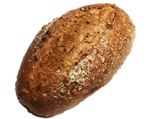 Donker meergranenbroodje, rijk gevuld met walnoten.