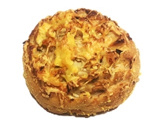 Overheerlijke broodbol gevuld met onder andere abrikoos, papaya, ananas, noten op pompoenpitten, afgewerkt met maïsgries, kaas en ui.