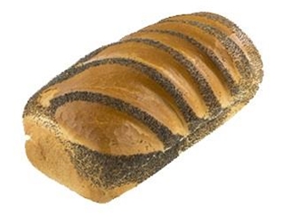 Een smakelijk en zacht wit brood in een vloer model met op de korst maanzaadjes.
